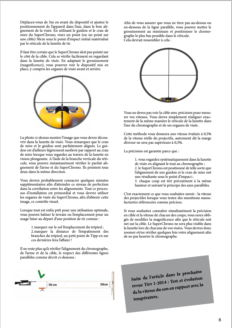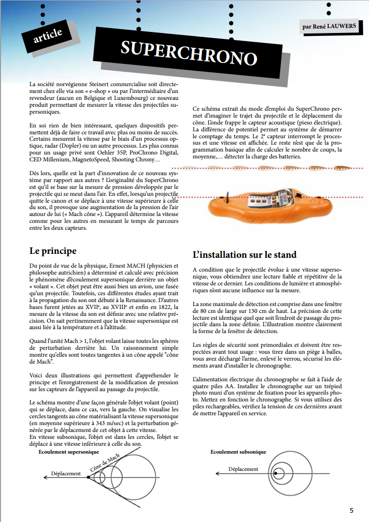 Dans Tirs 4-2013, la revue officielle trimestrielle de l’Union Royale de Sociétés de Tir de Belgique, on a dedié quatre pages au SuperChrono. L’article décrit le fonctionnement de l’appareil et sa mise en oeuvre.